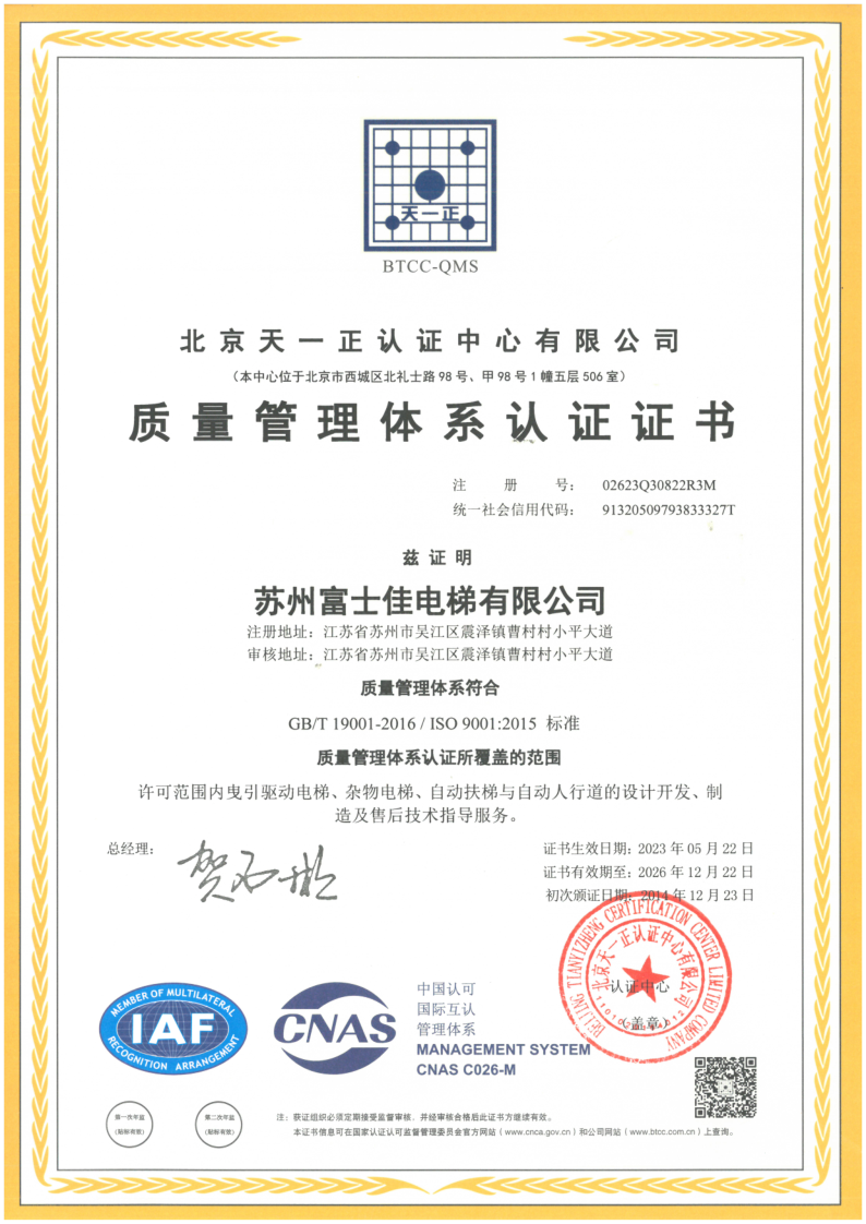 質(zhì)量管理體系認(rèn)證證書